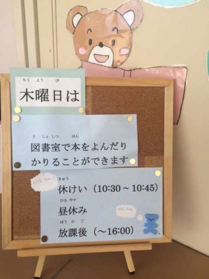 昼休みだけでなく、2限後の休憩時間や放課後にも図書室で本を読んだり、本を借りることができます。