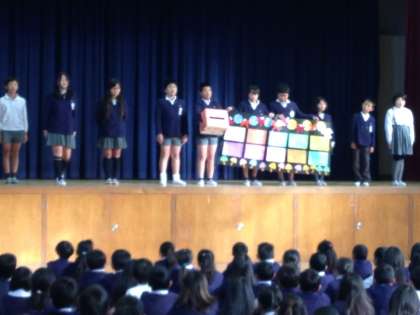11月21日(木)児童集会で新聞委員会からの発表がありました。学校内で疑問に思うこと、不思議に思うことなど、探偵ポストに入れられた質問内容について新聞委員会が調査した結果を発表しました。飼育小屋で飼っているウサギのミミちゃんはなぜオスなのにミミちゃんというのか、遊び広場の池にはどんな生物がいるかなどの調査依頼についてしっかり発表できていました。