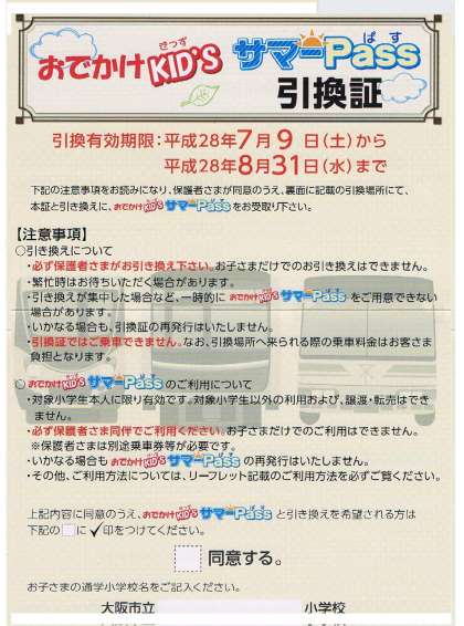 大阪市交通局無料乗車券「おでかけKID'SサマーPass」