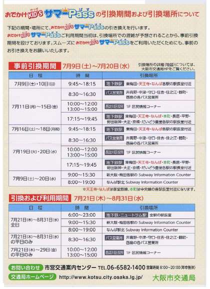 7月始めに配布いたしました大阪市交通局からの案内にありますように、今年は事前に同封されていました「引換証」を「Pass(無料乗車券)」に引き換える必要があります。