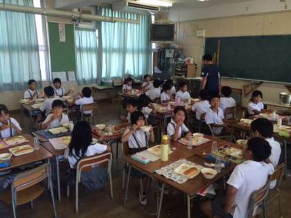 エアコンのある教室での給食は、格別です。