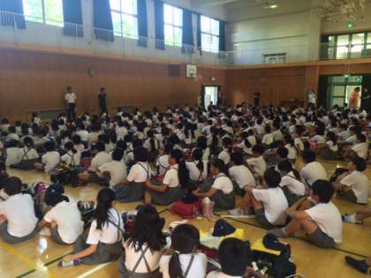 今日は、5時限目に台風による風水害想定の「避難訓練」がありました。