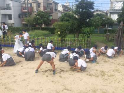 児童集会(草抜き・石拾い)−1