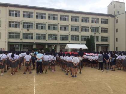 今日の児童集会では、運動会に向けて、全校で歌の練習をしました。