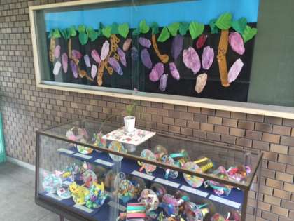 玄関の掲示物、今月の担当は1年生と2年生です。
