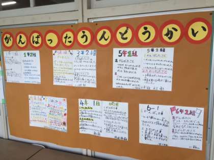 また、職員室前に運動会の各学年の感想も掲示されています。