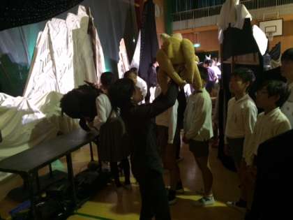 「人形劇」鑑賞の後、6年生は舞台裏を見せていただきました。