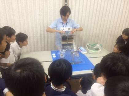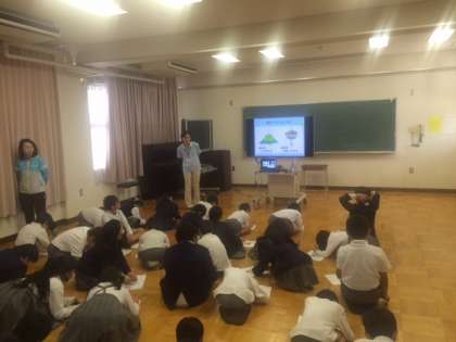 サントリーから講師の先生に来ていただいて、「水を育む森のはたらき」について、学習しました。