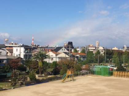 木枯らしが吹く中、午前9:40頃、北西の空に虹ができていました。