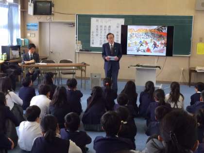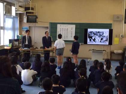 今日の土曜授業で、6年生は「平和学習」の一環として、大桐地域にお住いの岡田 匠さん(83才)から「大阪空襲の体験談」をお聞きしました。