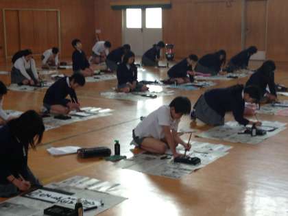 1月10日(金)6年生は、5.6時限目に講堂で書き初めをしました。試書をした後、先生の手本書きを見て説明を聞いて、部分練習をしてから清書をしました。書いたのは「創造する心」。教室とはひと味違った雰囲気の中で子ども達は一生懸命書き初めに取り組んでいました。