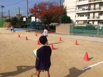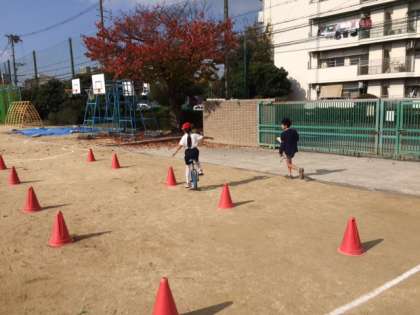 2限後の休憩時間に、雨で延期になっていた、3・4年生の「一輪車大会」がありました。