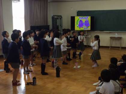 「おいもクイズ」や「おいもダンス」を1年生に披露しました。