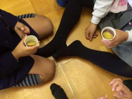 2年生が、栽培・収穫したサツマイモを1年生と一緒に食べました。