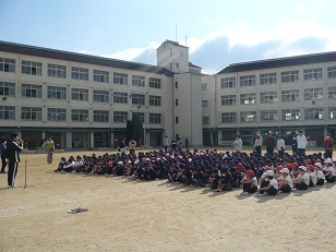 1月17日(金)近畿地方に大きな地震が発生したという想定で避難訓練を実施しました。子ども達は、避難経路を守ってすばやく静かに運動場に避難することができました。しかし、地震はいつやってくるかわかりません。19年前の今日、あの死者6434人、行方不明者3名、負傷者43,792人を出した阪神淡路大震災も突然やってきました。ふだんから災害が起きた時にどのように行動するのかを考えておくことが必要です。