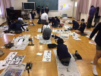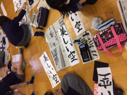 3限目、5年1組は、「書初め」に取り組みました。