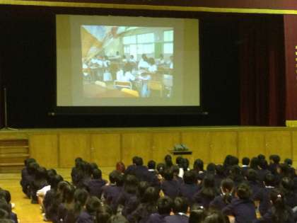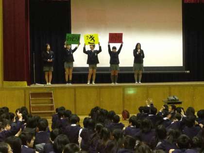 1月30日(木)児童集会の時に、給食委員会の子ども達が、給食週間にちなんで発表を行いました。交流給食の様子、給食調理員さんへのインタビュー、食器を返すのが遅れた時の返却の仕方等をわかりやすくビデオにまとめて、とても上手に発表していました。その後、食物についての3択クイズもあり、すごく楽しい集会になりました。給食委員会の皆さん、ご苦労様でした。