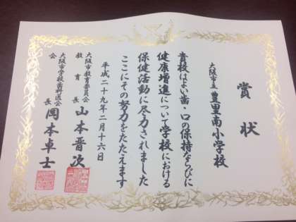 「よい歯の保持と健康増進」についての本校のみんなの取組を評価して頂きました。