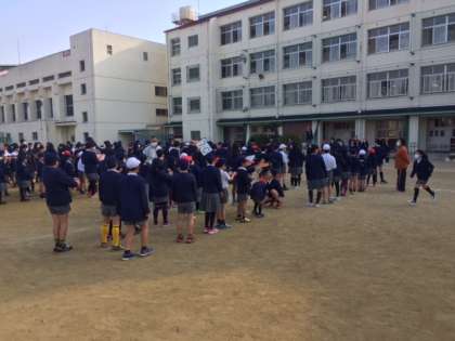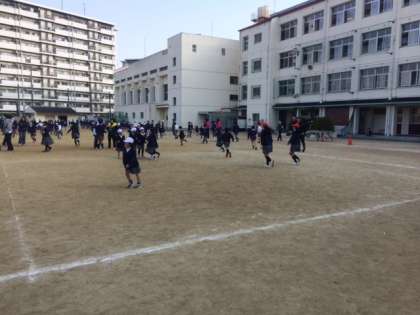 今朝は、校庭で「シッポとりゲーム」をしました。
