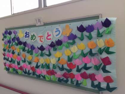 入学をお迎えする、掲示物です。