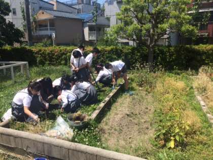 2校時後の15分休みは、各学年で育てている植物のお世話をしてくれています。