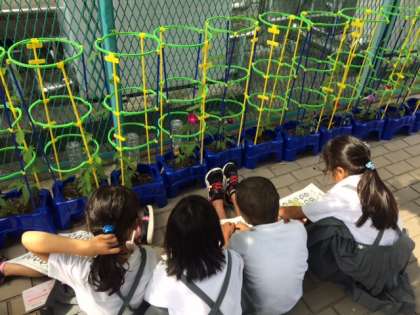 1年2組では、自分の育てているアサガオの観察をしました。