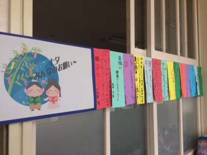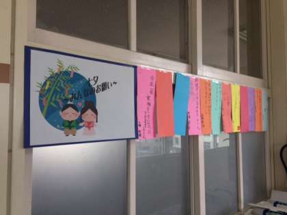 5年生では、七夕に向けて、短冊に願い事を書きました。