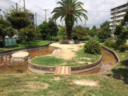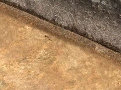 滝つぼに潜んでいた、メダカたちやどこにいたのかアメンボたちがいきよいよく池全体にひろがっていきました。