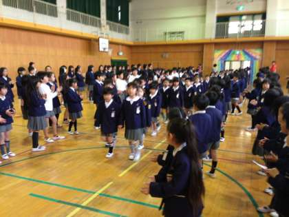 4月10日(木)朝の集会の時間から1時間目にかけて、1年生を迎える会を行いました。校長先生のお話の後、在校生が「校歌」を歌って1年生の入学をお祝いしました。その後、2年生が、これから元気に学校に通ってきてほしいという願いをこめてアサガオの種をプレゼントしました。最後に、1年生が「よろしくお願いします。」とあいさつをして、迎える会が終わりました。様々な場面で1年生にやさしくしてあげてほしいと思っています。
