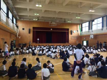 木曜日の朝は、児童朝会があります。集会委員の皆さんが工夫をこらして企画進行してくれています。