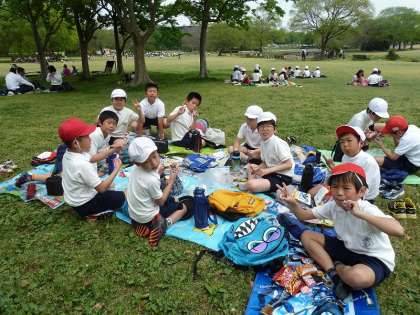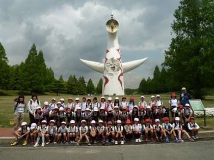 5月1日(木)4年生は、万博記念公園へ遠足に行きました。心配された天気も回復し、すばらしい晴天の下、公園までの道のりを歩きました。万博記念公園では、友達と芝生の上でお弁当を食べたり、大型の遊具で遊んだりしました。自然観察学習館にも入りました。新緑の季節を迎えようとする公園で思う存分楽しむことができました。