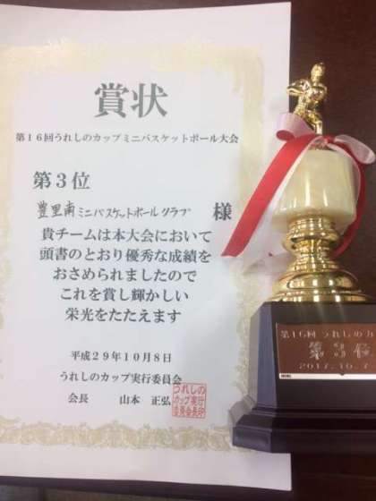 ミニバスケットボールやキックベースボールチームの獲得した表彰状を伝達しました。