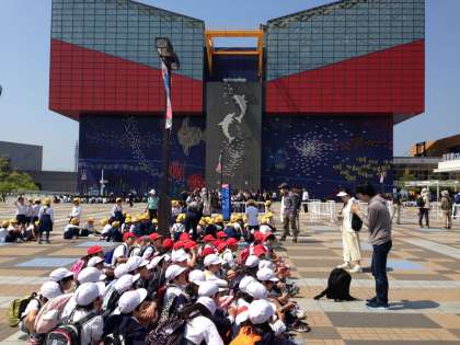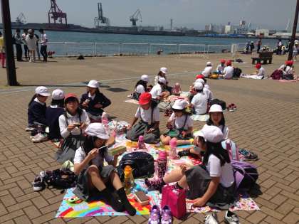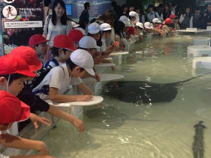 5月2日(金)3年生は、海遊館へ遠足に行きました。館内は、ゴールデンウィーク中ということもあって多くの人出でにぎわっていましたが、子ども達はグループごとにしっかり行動して海のさまざまな生き物を観察していました。一番楽しんでいたのは体験コーナーです。子ども達は手洗いをした後、サメやエイの背中を実際に手でさわって皮膚の感触を確かめていました。すばらしい天気に恵まれ、お弁当も海の見えるところでなかよく食べることができました。