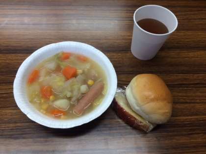 今月のメニューは、ポトフ・ロールパン・リンゴ、デザートはみたらし団子でした。
