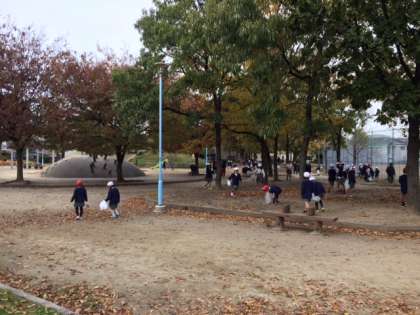 2時間目、1年生・2年生は、中央公園に「秋みつけ」に出かけました。
