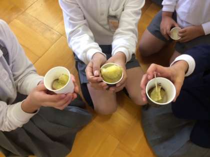 2年生が、1年生を招待して「おいもパーティー」をしました。