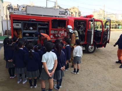 2・3時間目は、東淀川消防署と区役所から職員の方に来ていただき、