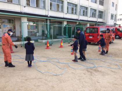 2・3時間目は、東淀川消防署と区役所の職員の方に来ていただいて、
