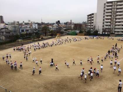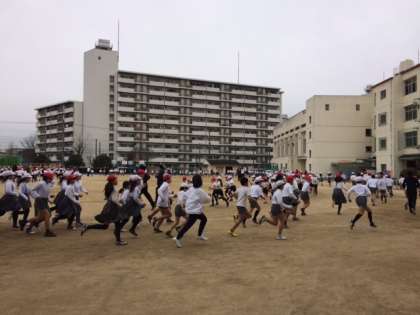 2時間目の後の15分休みに、全校で「耐寒かけ足」に取り組んでいます。