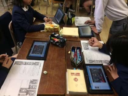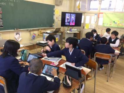 6年1組では、図工の時間にタブレットを使って、