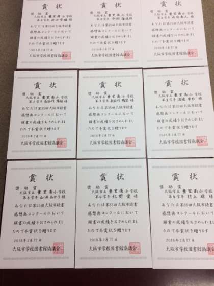 今日の児童朝会で、たくさんの表彰状を伝達しました。