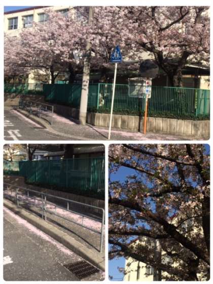 正門の桜も花びらを撒きはじめ、緑色のものもちらほらみえています。