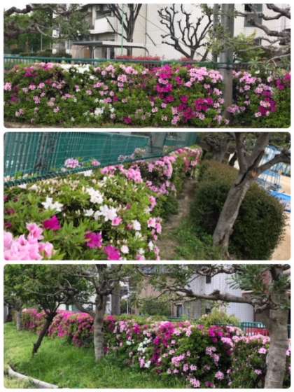 校庭北側のツツジも八〜九分咲きというところでしょうか。
