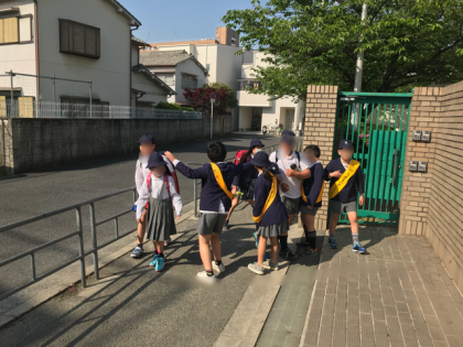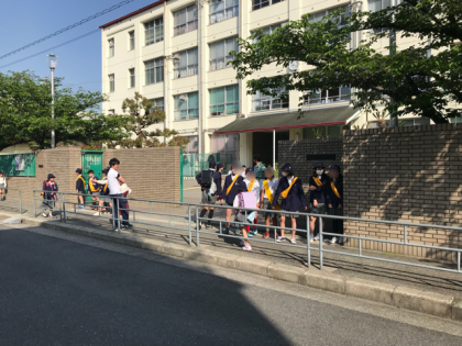 時間どおりに、当番の児童が集まり、活気のある挨拶運動で、ハナマルでした。