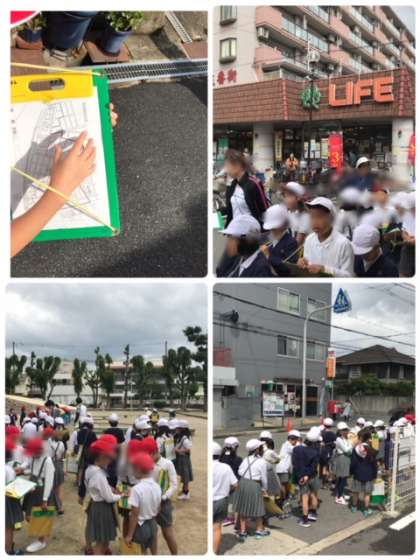 3年生は、地図を見ながら、「校区たんけん」にでかけました。