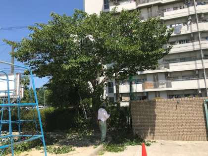 樹木の剪定作業をお願いしています。夏を前にスッキリしました。