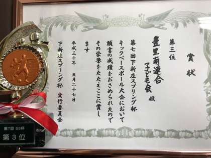 今日の児童朝会で、昨日行われた、キックベースの大会で、豊里南連合子ども会の皆さんが3位に輝きました。