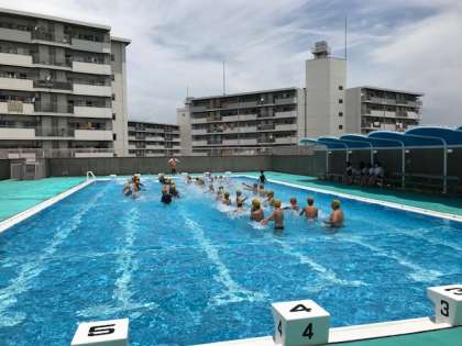 6年生は、プールで水泳の授業でした。