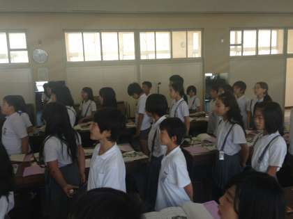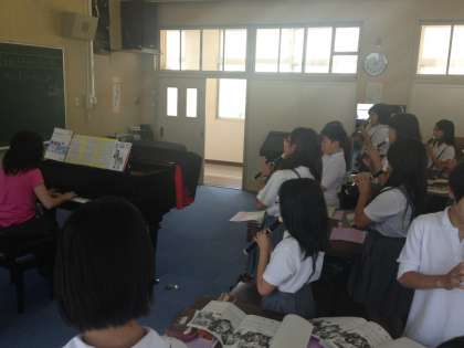 授業はテンポよく進められ「子どもの世界」をはじめ「オーラリー」「花は咲く」「少年時代」など歌声が音楽室いっぱいに響き渡っていました。