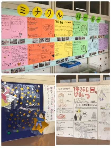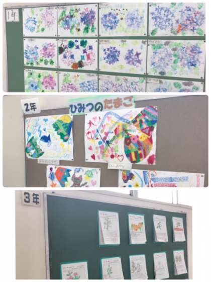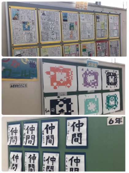 どの学年も児童の力作が掲示されています。
